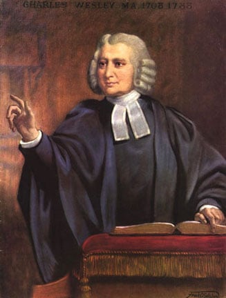 Dieses einzigartige Lied wurde von Charles Wesley (1707-1788), dem Bruder John Wesleys, des Gründers des Methodismus, gedichtet. Er war ein geborener Dichter, der überall dichtete, zu Pferd, in der Postkutsche, auf der Kanzel und noch sterbend. Im Ganzen dichtete er 6.500 Lieder. Er war Theologe, aber ein Mann strengen sittlichen Lebenswandels. Wie sein Bruder John wurde auch er durch Herrnhuter[1] Brüder zur Bekehrung und zur Gewissheit der Vergebung seiner Sünden geführt, so dass er schon zwei Monate nach Antritt seines Pfarramtes von seiner Gemeinde vertrieben wurde und dann zehntausend Menschen im Freien predigte. Von 1739 bis 1756 war er Reiseprediger in England und Wales und brachte den Armen die Heilsbotschaft von Christus.