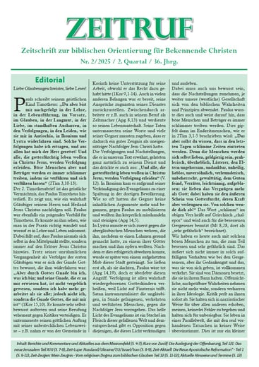 Der „Zeitruf“ hat sich zum Ziel gesetzt, die Gemeinde Jesu durch biblische Ausarbeitungen und Informationen zuzurüsten und aufzuklären. Neben der Auslegung der Offenbarung veröffentlichen wir aktuelle Nachrichten und Themen aus Gemeinde und Gesellschaft, Berichte von Zeitzeugen usw.
